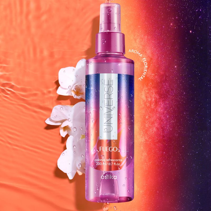 Colonia Universe Fuego con aroma floriental. Conecta con tu elemento y despierta tus sentidos. Capacidad: 200 ml. Tamaño: 18.8x4.62x4.62 cm.